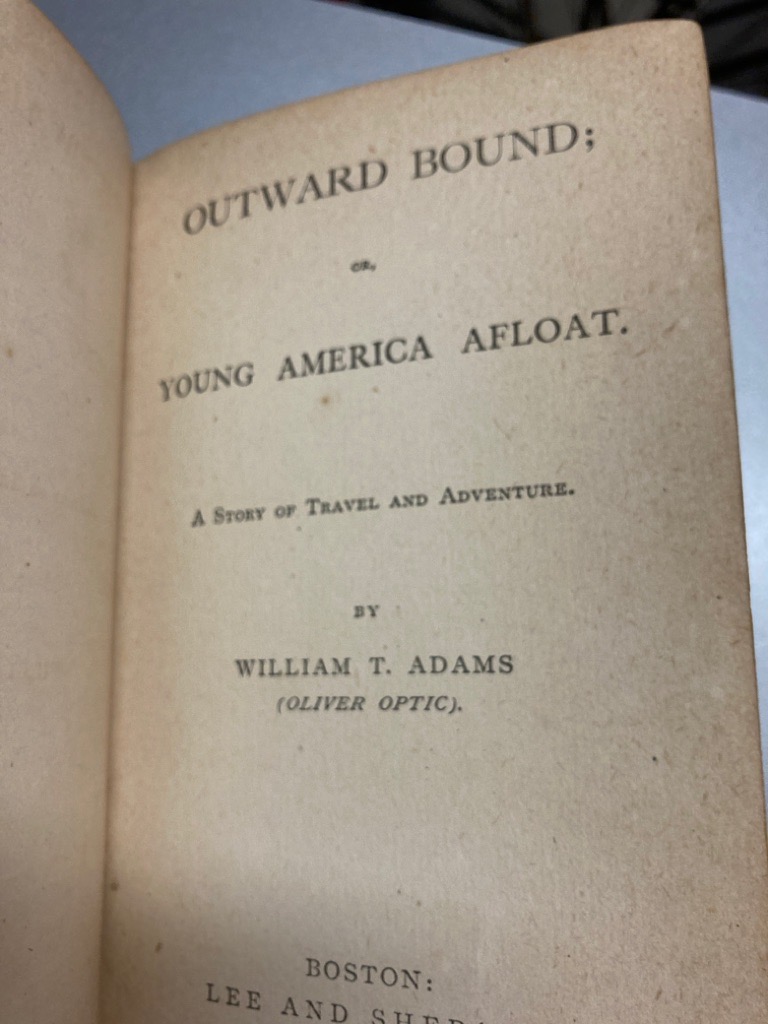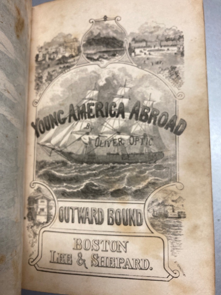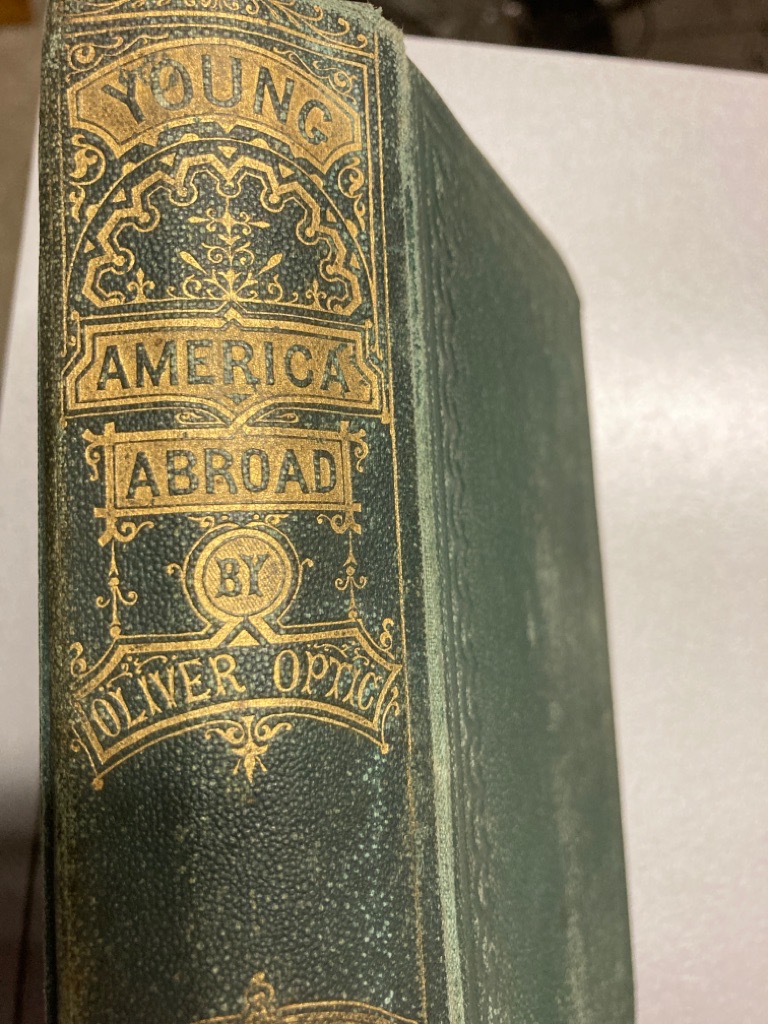 Description: 336p original green cloth still well preserved, hinges a little soft but still holding, spine gilt, engraved title and frontispiece, also plates depicting ships, engraved title page and spine reads "Young America Afloat", paper browning a little, but book block well aligned and square