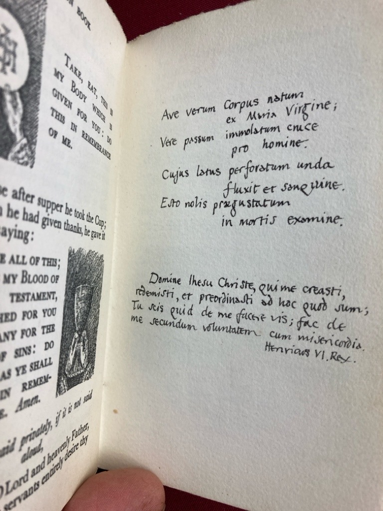 Description: this booklet has been rebound interleaved with quality paper, bound in marbled paper, with additional prayers etc added to the empty pages in a neat and attractive hand, spine creased, small format, with illustrations, "Printed by Mowbray in the City of Oxford 6262"