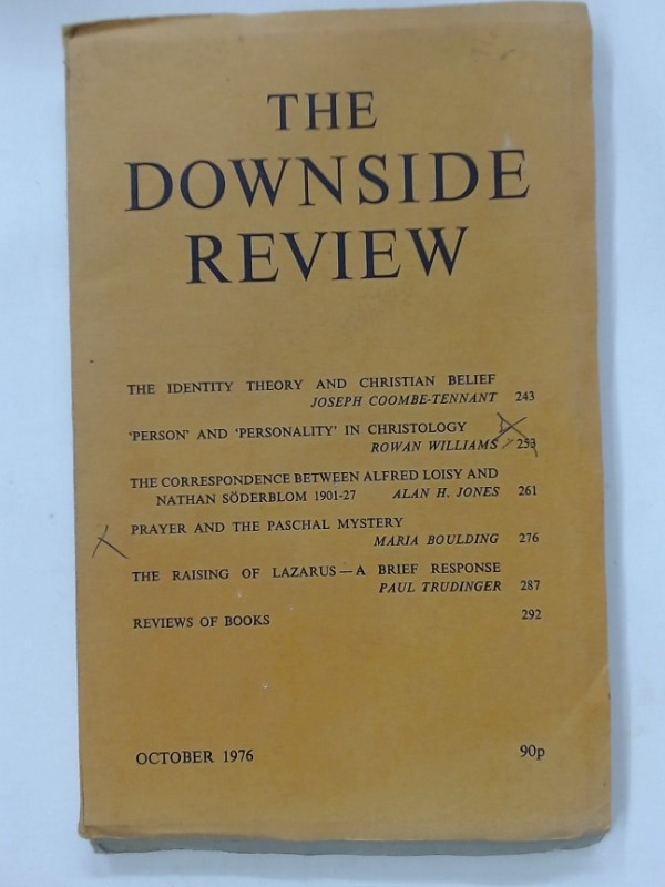 Description: this is an essay in the October 1976 issue of Downside Review, for sale is the entire issue, orange card cover, includes also essays by Coombe-Tennant, Alan Jones(Loisy & Soderblom), Maria Boulding (Paschal Mystery), Paul Trudinger (Raising Lazarus) etc