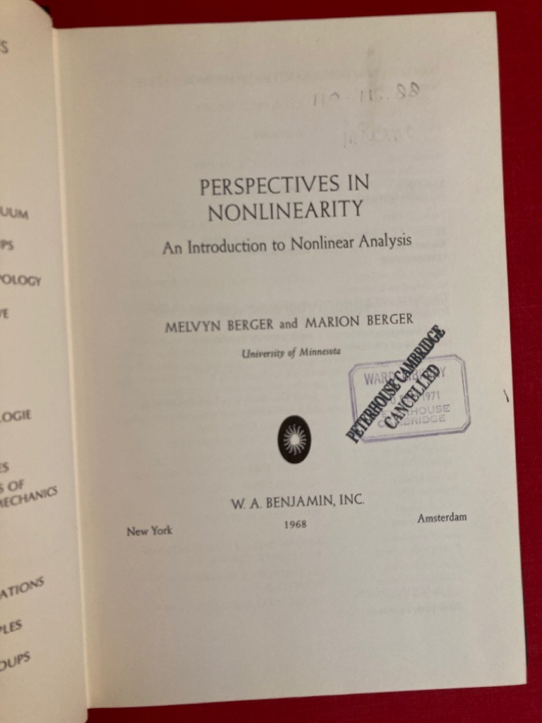 Publisher: Amsterdam: Benjamins 1968. (Mathematics Lecture Note Series.)