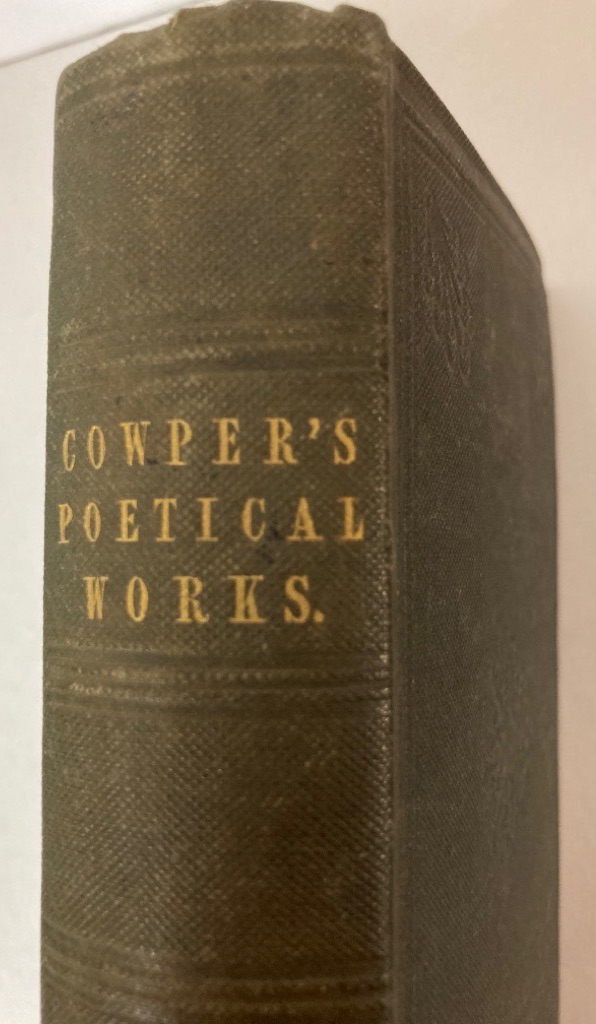 Description: 468p small format, green cloth firm and tight, lettered "Cowper's Poetical Works" to spine, engraved frontispiece and engraved title well preserved, a few difficult words in pencil to back endpaper, a neat and attractive copy