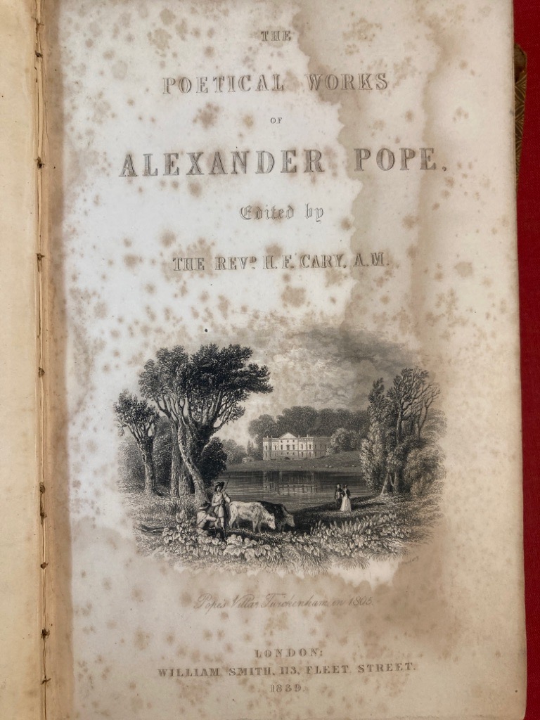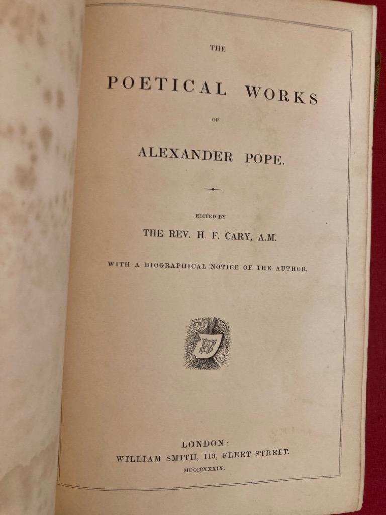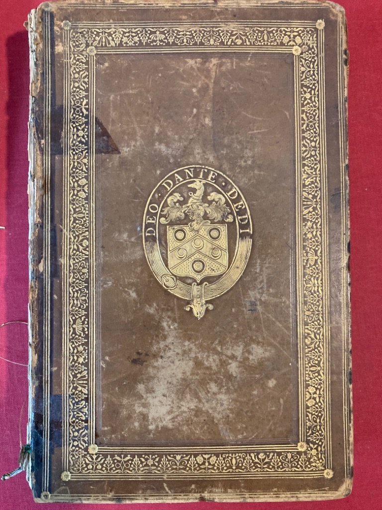 Description: xvi 478p large calf, a battered copy, boards detached, spine detached but large part of spine laid in, text in two columns, foxing to endpages, engraved title page, elaborate gilt decorations to cover, first edition thus, title page with vignette water damaged, still firm binding, nice and clean pages, a worthwhile copy