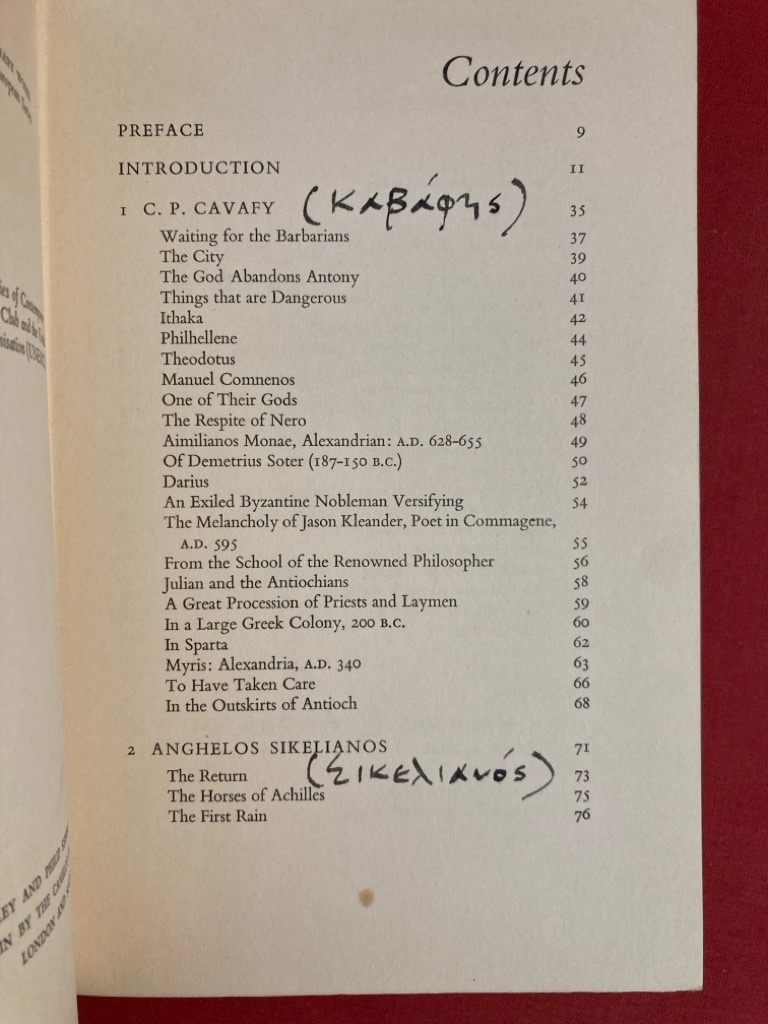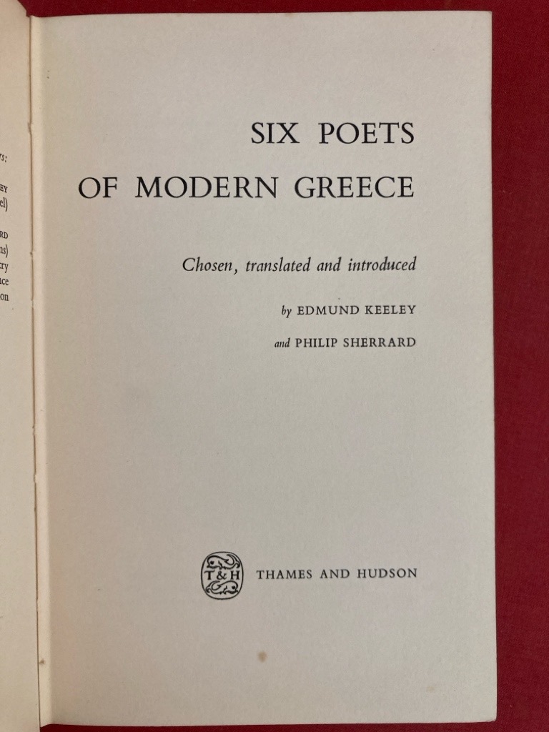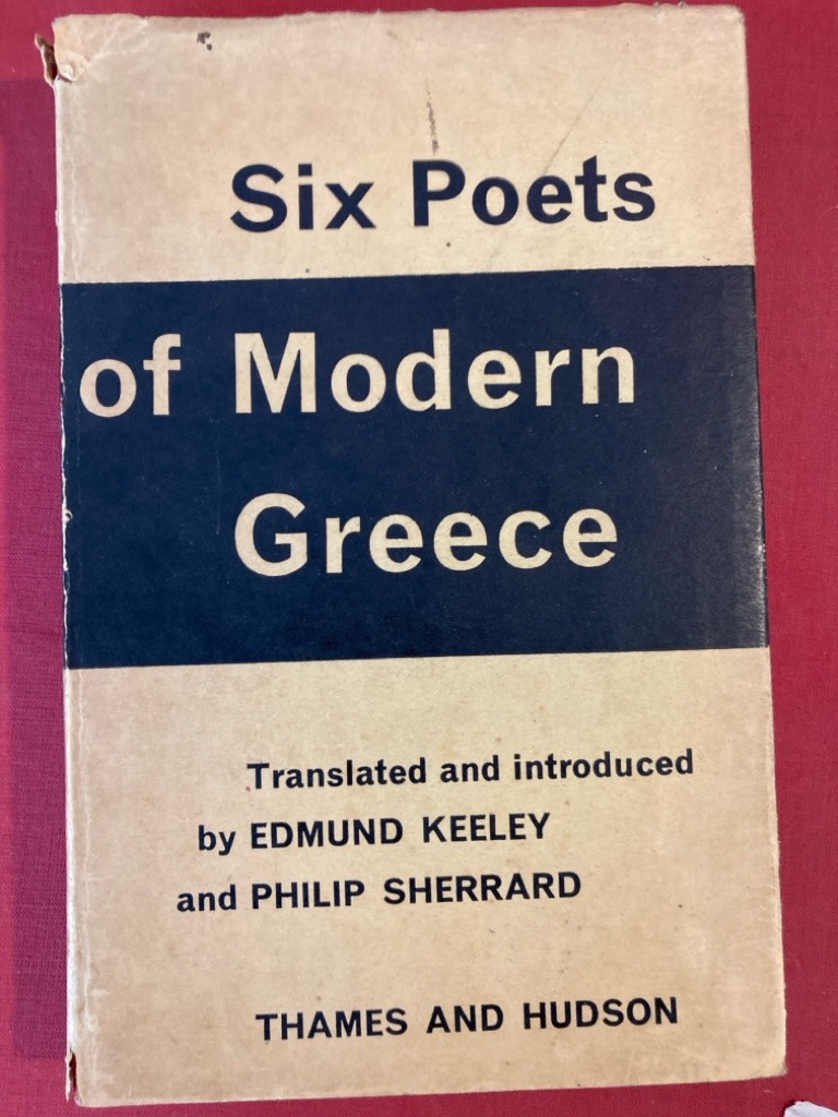 Description: 192p terracotta cloth, somewhat worn dustjacket present, table of contents had the names of the authors added in Greek letters in a large and legible hand, newspaper clippings inserted, a little dusty, top edge browning, no names or stamps, first edition