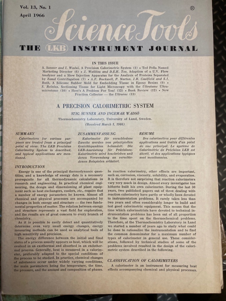 Publisher: Stockholm: LKB Produkter 1966. (Science Tools. The LKB Instruments Journal)