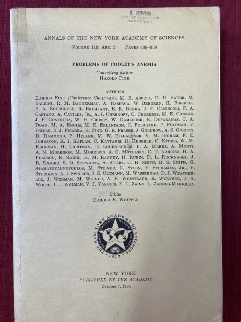 Description: approx 450p paperback, very good, contains papers from a conference on the topic held in 1963, many illustrations and graphs, small shelfmark: Homozygous beta thalassemia major for some