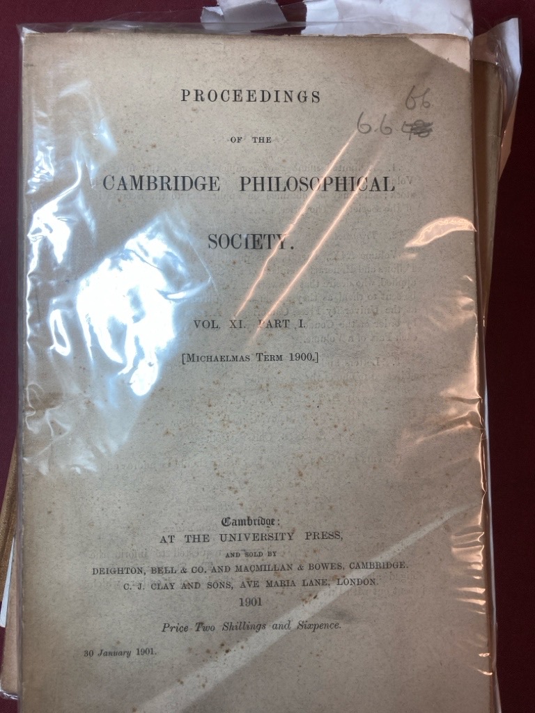 Publisher: Cambridge University Press 1901. (Proceedings of the Cambridge Philosophical Society)