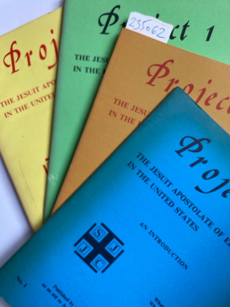 Description: a collection of four volumes, 28p 166p 26p 148p, colourful paperback volumes, text reproduced from type-script, an invitation to respond, the Jesuit National Leadership Program in action