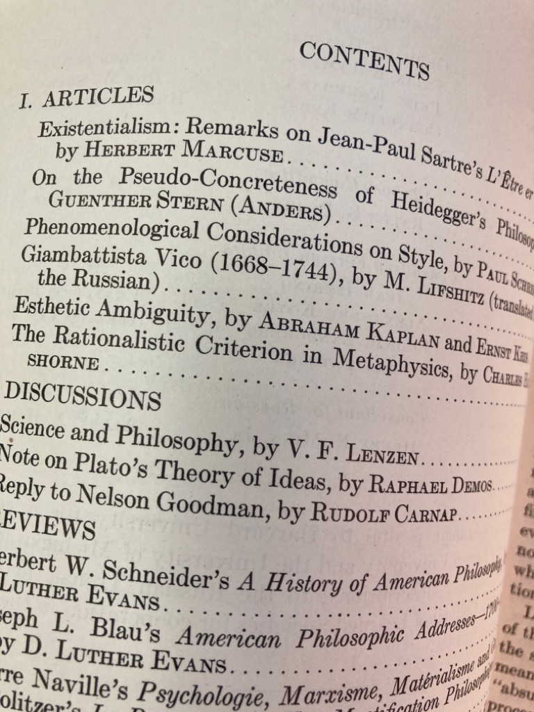 Description: this is a 40p essay as published in Philosophy and Phenomenological Research in 1948. For sale is the entire issue, approx 150p, blue paper cover fresh, including many other essays, including an essay by Marcuse on Sartre and other papers by Kaplan, Hartshorn, Lifshitz etc. The issues is exceptionally well preserved, without names or stamps, early Anders (Stern) publication