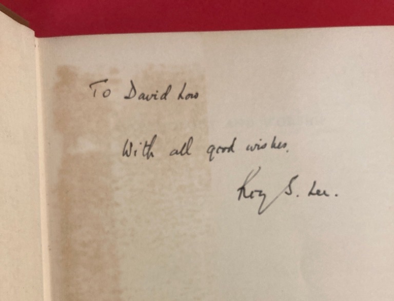 Description: 110p brown hardback, gilt lettering & highlights to spine, dustjacket well preserved, first edition, 6 lectures, inscribed to well-known cartoonist David Low by Roy S Lee in 1955, 'To David Low with all good wishes, Roy S Lee', some red pencil marks, note on last page in red, otherwise fresh & hardly used