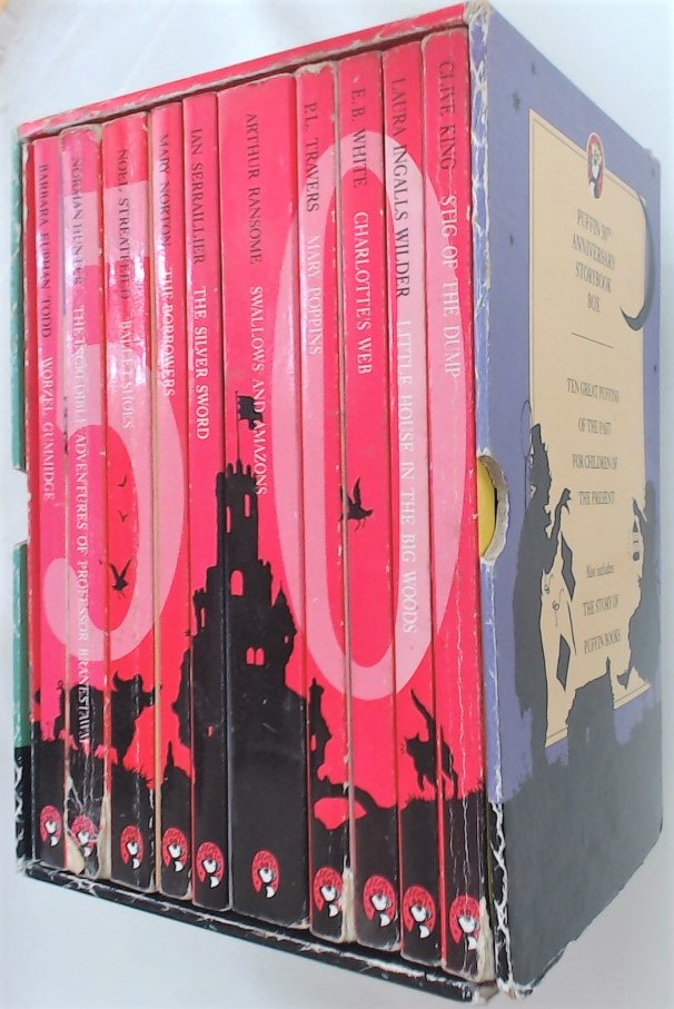 Description: Boxed set of ten paperbacks, good condition, light wear, one edge of box torn, binding intact if a little loose on some of the books, pages neat and bright, a few light pencil marks, overall good copy of an uncommon set; this copy includes the rare pamphlets 'The Story of Puffin Books' and 'A Celebration in Poetry'