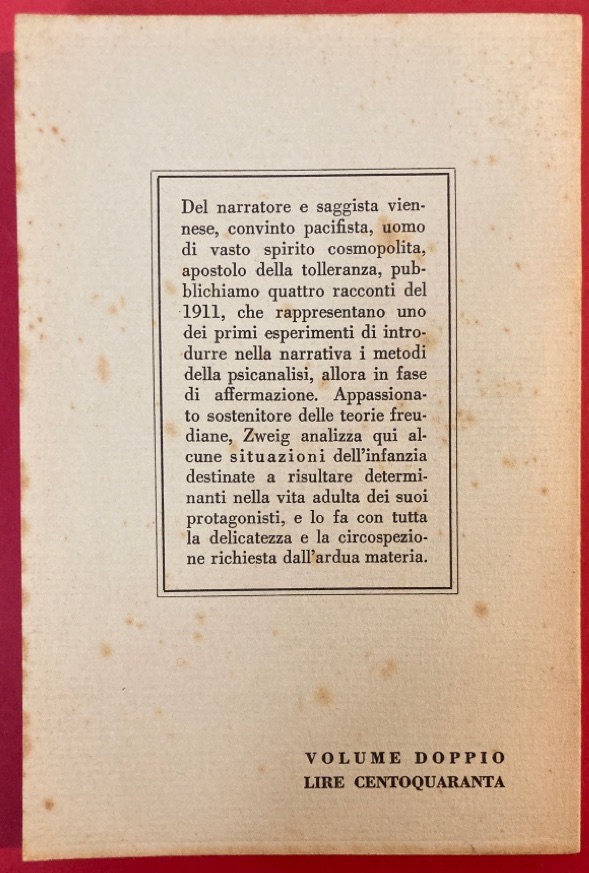 Description: 163p grey card cover, tight copy, spotting to front cover, no names or stamps, spines square, slight spotting of covers, first edition, "volume doppio lire centoquaranta"