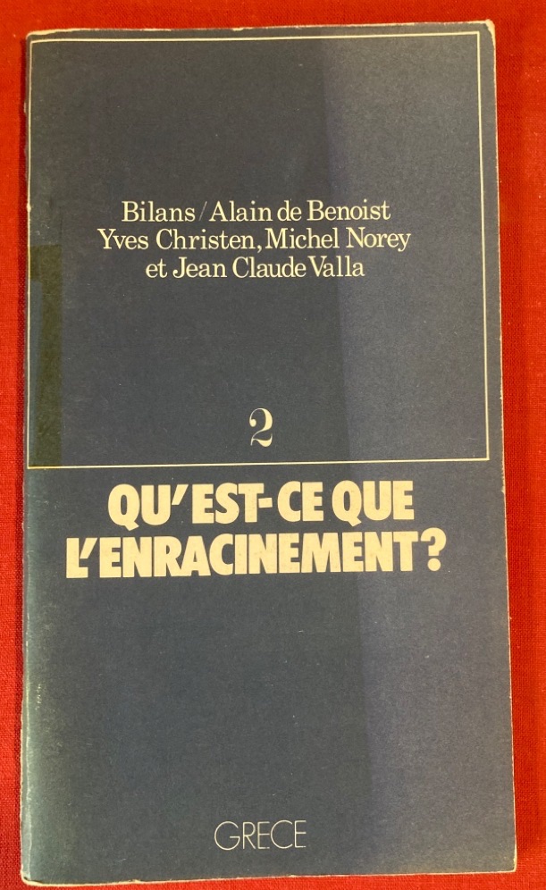Description: 73p blue paperback, slim tall volume, dark blue cover, essays by Benoist, Jean-Claude Valla, Yves Christen, Michel Norey. This copy has been studied carefully by a reader who translated of some French words neatly in the margin of the page (into Africans it seems), also added some notes to final empty page, and repaired a torn page with adhesive tape