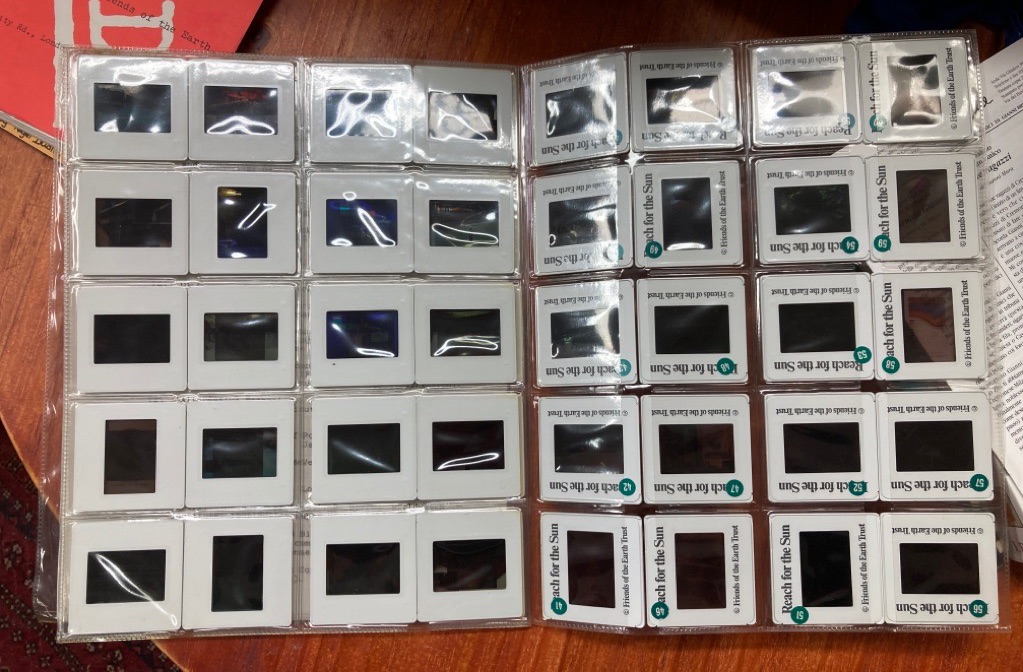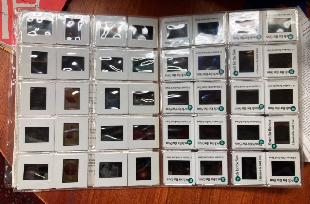 Description: slide set with unpaginated stapled booklet of speakers notes, booklet with purple cover, pages clean and bright, text reproduced from typescript, slides and booklet contained in clear plastic folder, undated, in excellent condition (ISBN: 9780905966380)