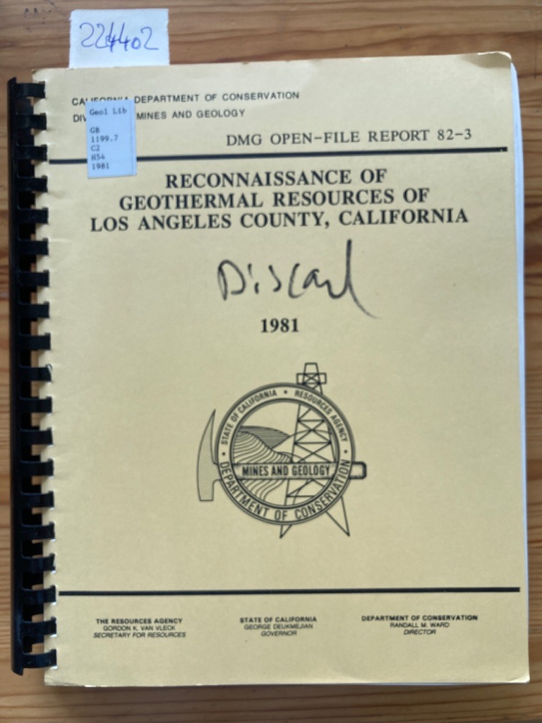 Publisher: Sacramento: Division of Mines and Geology 1981.