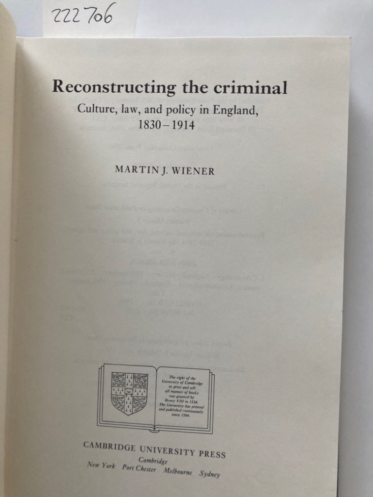 This book has been catalogued with the following subject terms: 19th Century, Crime, Sociology, United Kingdom