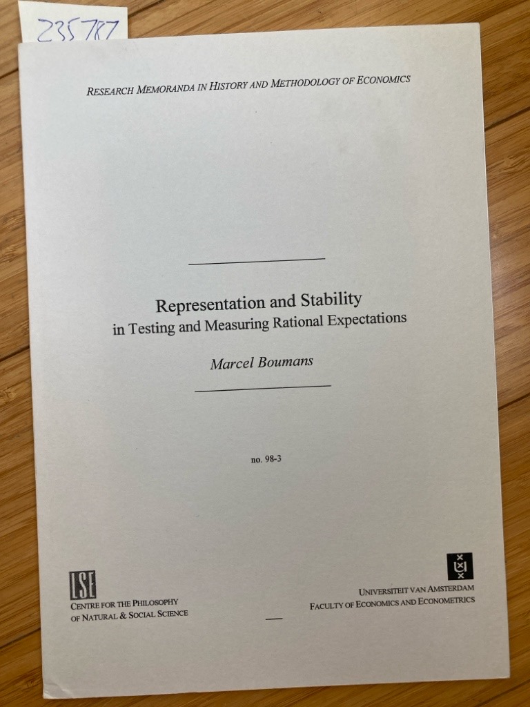 Publisher: Amsterdam: University 1998. (Research Memoranda in History and Methodology of Economics.)