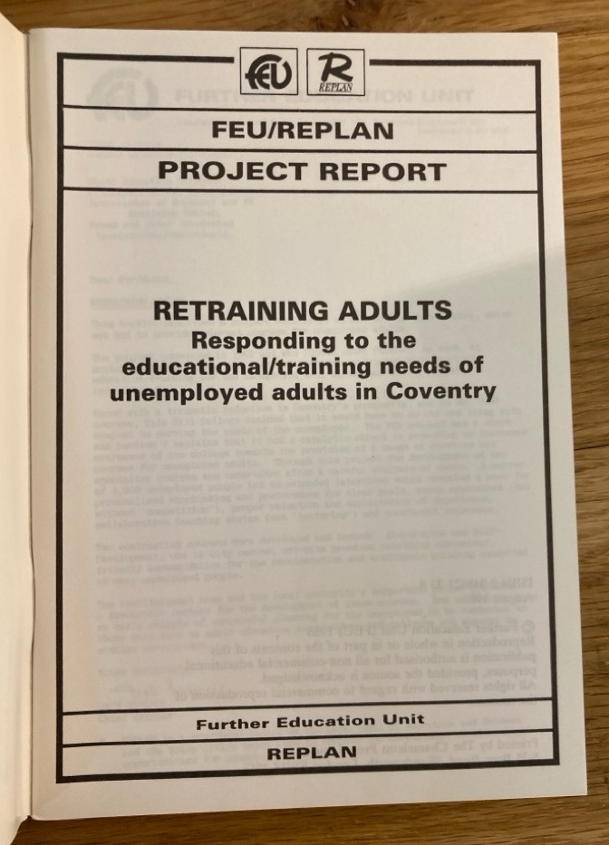 Publisher: London: Further Education Unit 1986.