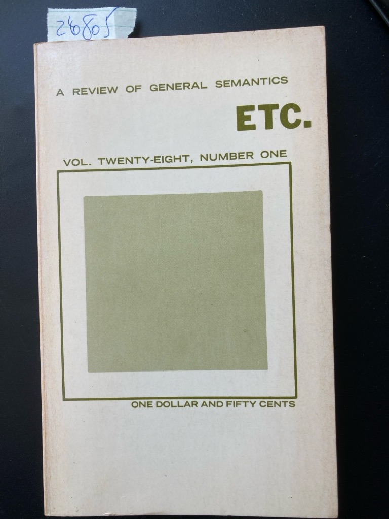 Description: 128p white card cover with green square, paperback format, a nice fresh copy, no names or stamps, very good, Semantic Confusion, Death Anxiety, Architecture as Language, Value Engineering, etc