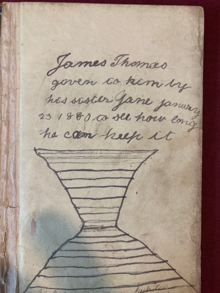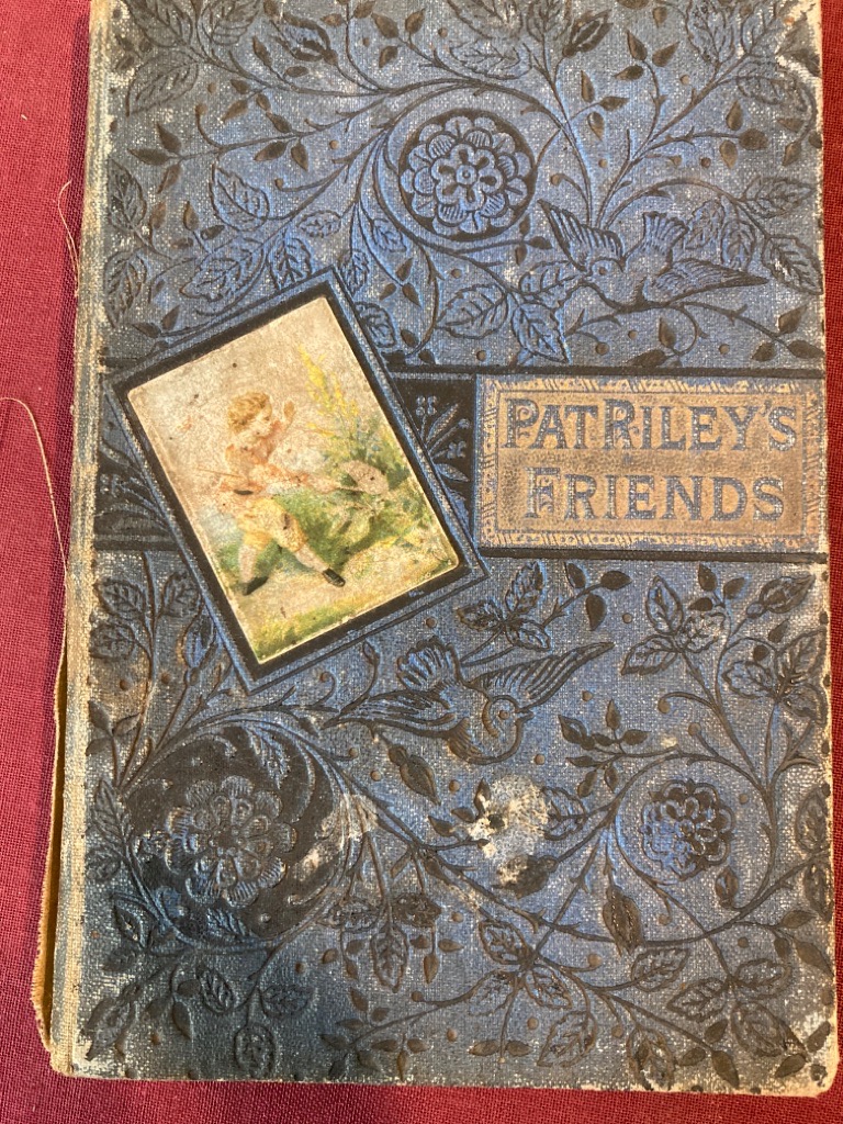 Description: 62p this is a very worn copy in original decorated blue cloth (worn) with original colour illustration mounted to front cover (now dull), book-block detaching, colour frontispiece, first page of text has top missing with loss of text, final pages with period colour transfers, includes a very compelling inscription from 1880 "given to him by his sister Jane to see how long he can keep it"