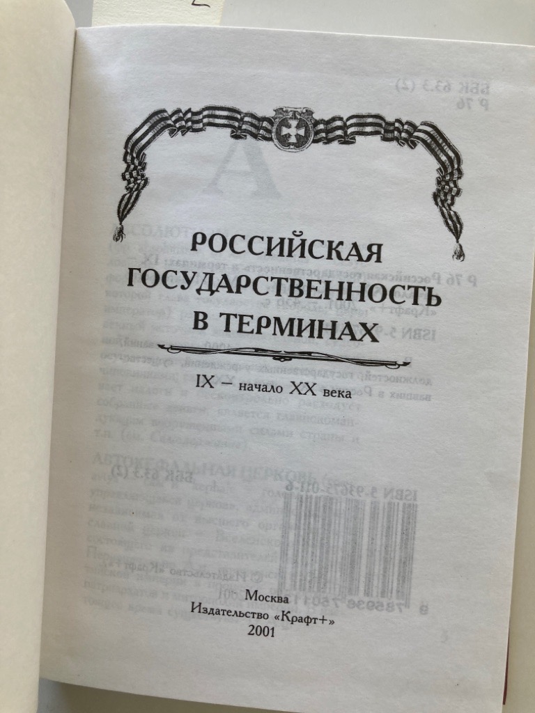 Publisher: Moscow: Kraft+ 2001.