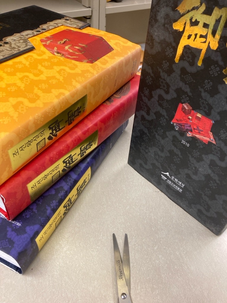 Description: three very large and heavy volumes in their slipcase, each volume has its own half slipcase (intact), outer case is torn but present, a very heavy set, excellent condition (ISBN: 9788963255286)