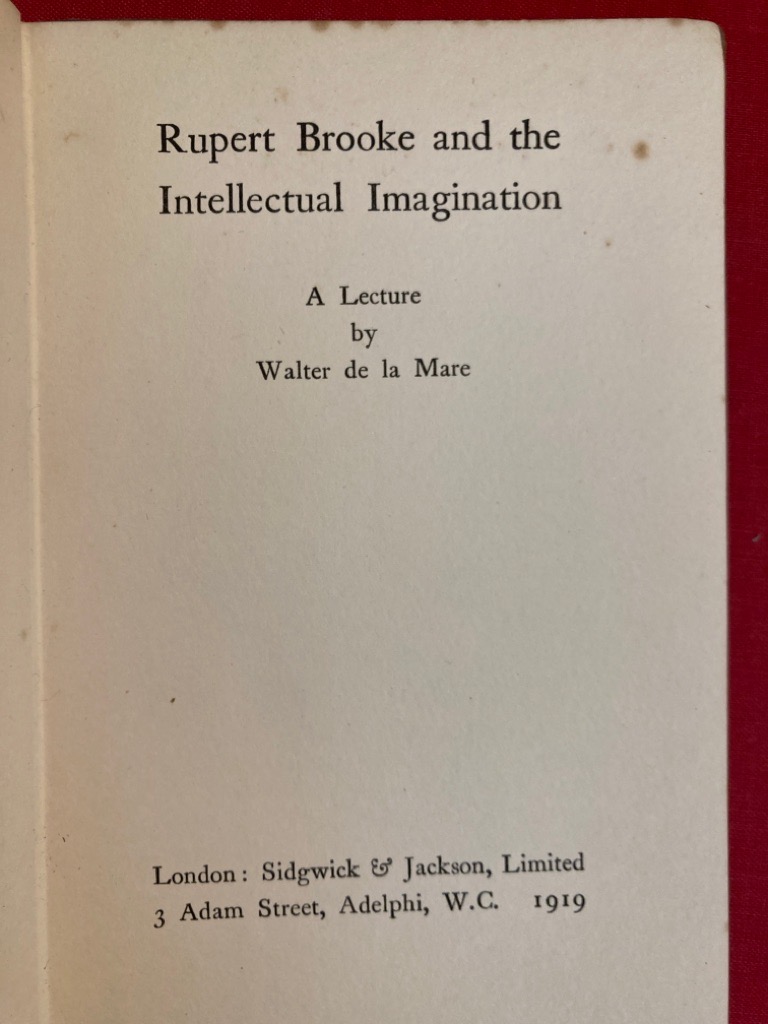 Publisher: London: Sidgwick 1919.