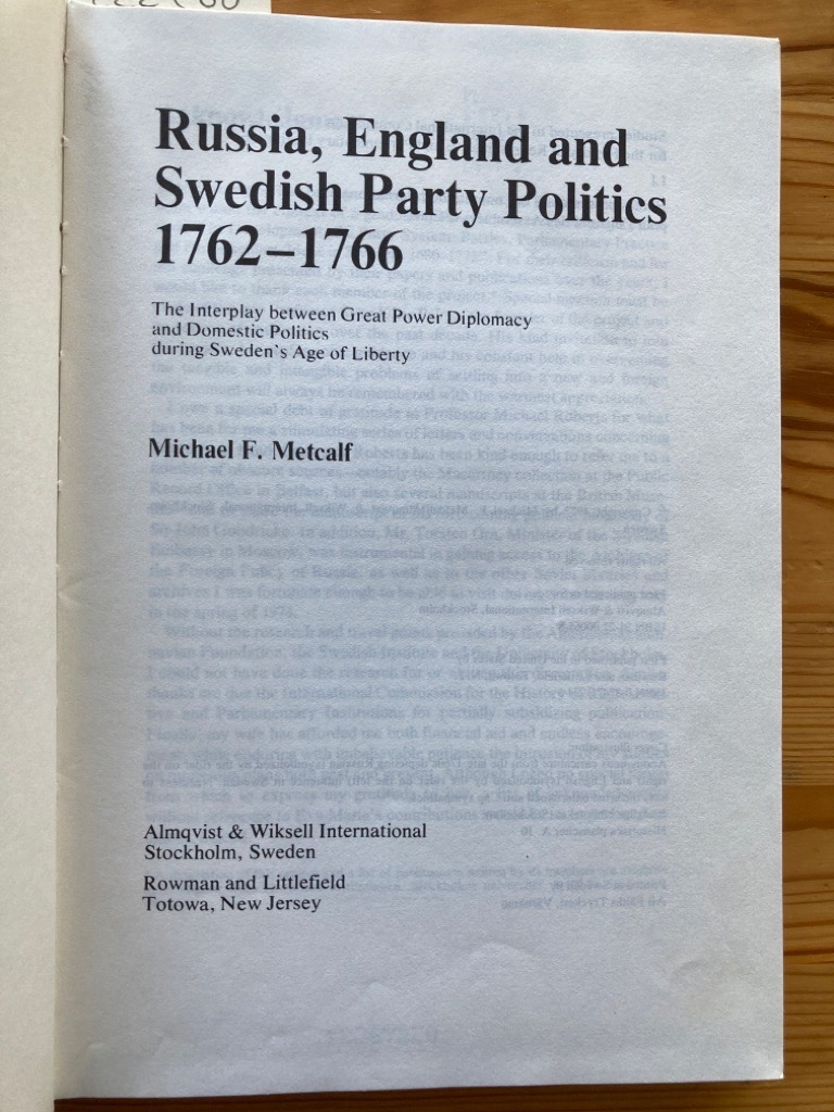 This book has been catalogued with the following subject terms: 18th Century, Politics, Russia & East, Scandinavia