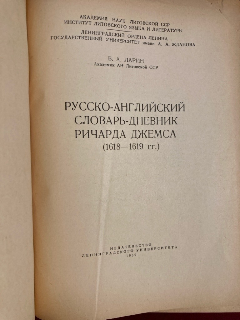Description: 419p blue cloth with white lettering to front board, paper yellowing, nice and useful copy, contains study and transcript of MS and also 73p facsimile of MS (James 43), edition of the dictionary compiled by Richard James (1592 - 1638) who travelled to Russia and was associated with Tradescant.