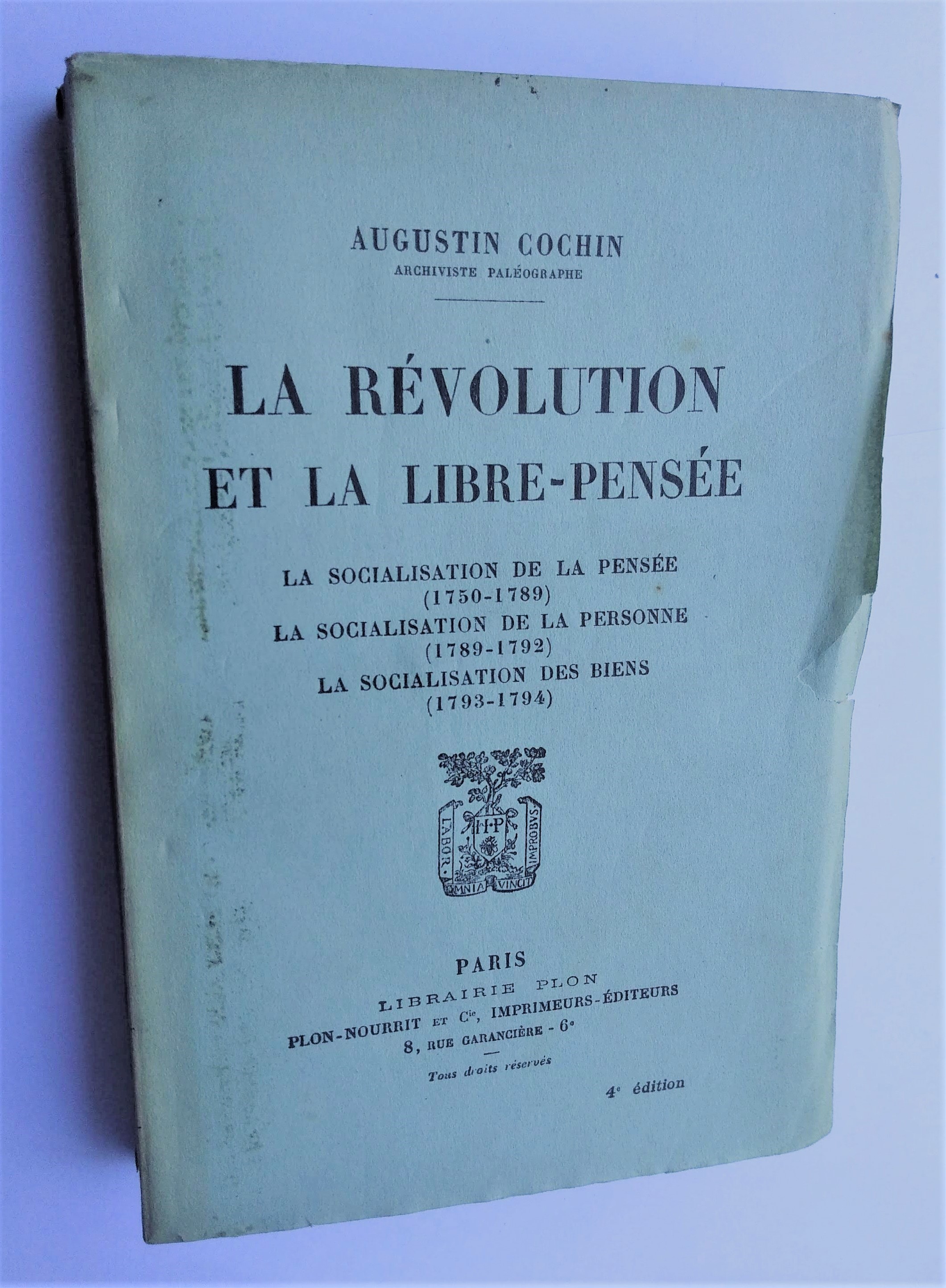 Publisher: Paris: Plon 1924.