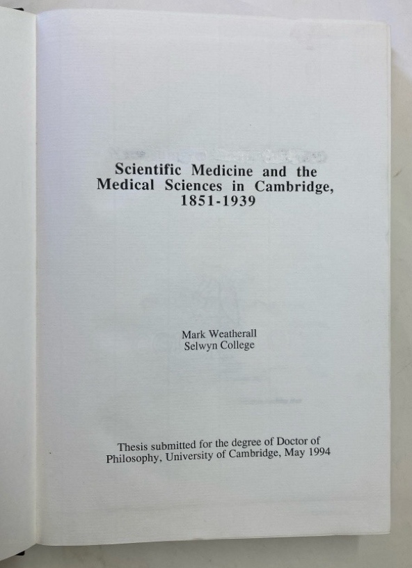 Description: vi 238p very large hardback thesis, black cloth with gilt lettering to spine, like new condition, all pages clear and bright, free from annotations and markings, first edition, author's handwritten personal note on endpaper, excellent copy of a very scarce publication
