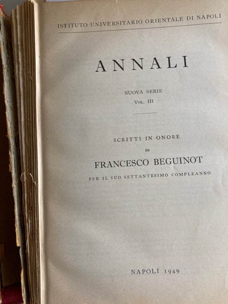 Publisher: Napoli 1949. (Annali del Istituto Universitario Orientale di Napoli)