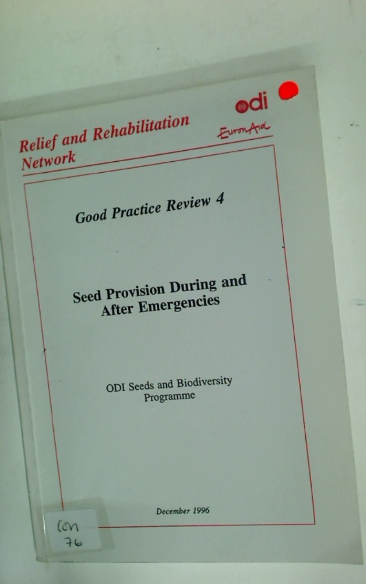 Publisher: London: Relief and Rehabilitation Network 1996. (Relief and Rehabilitation Network Paper)