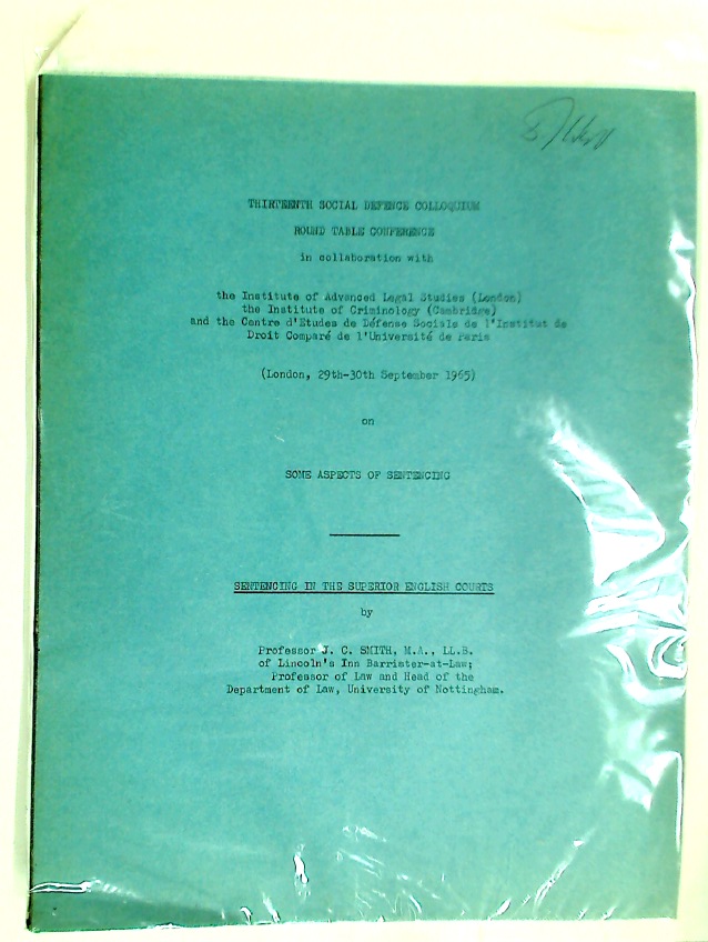 Publisher: London: Institute of Advanced Legal Studies 1965. (Thirteenth Social Defence Colloquium Round Table Conference)