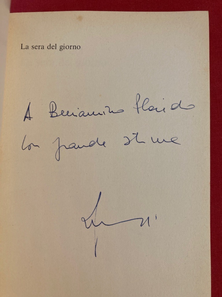 Description: 172p white paperback with red lettering, cover a little dusty, author inscription "con grande stime", this copy never read, spine tight and firm