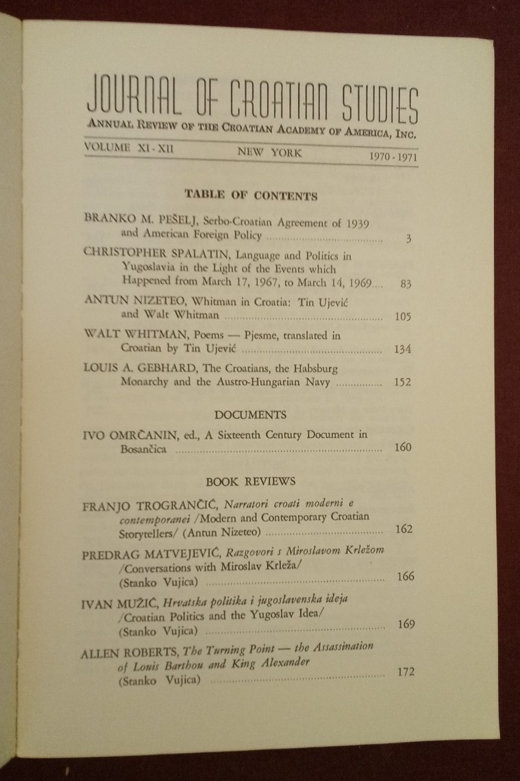 Publisher: New York: Croatian Academy of America 1971. (Journal of Croatian Studies.)