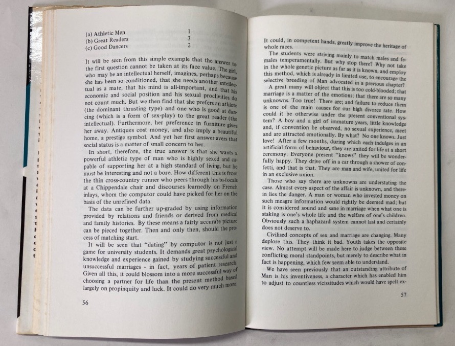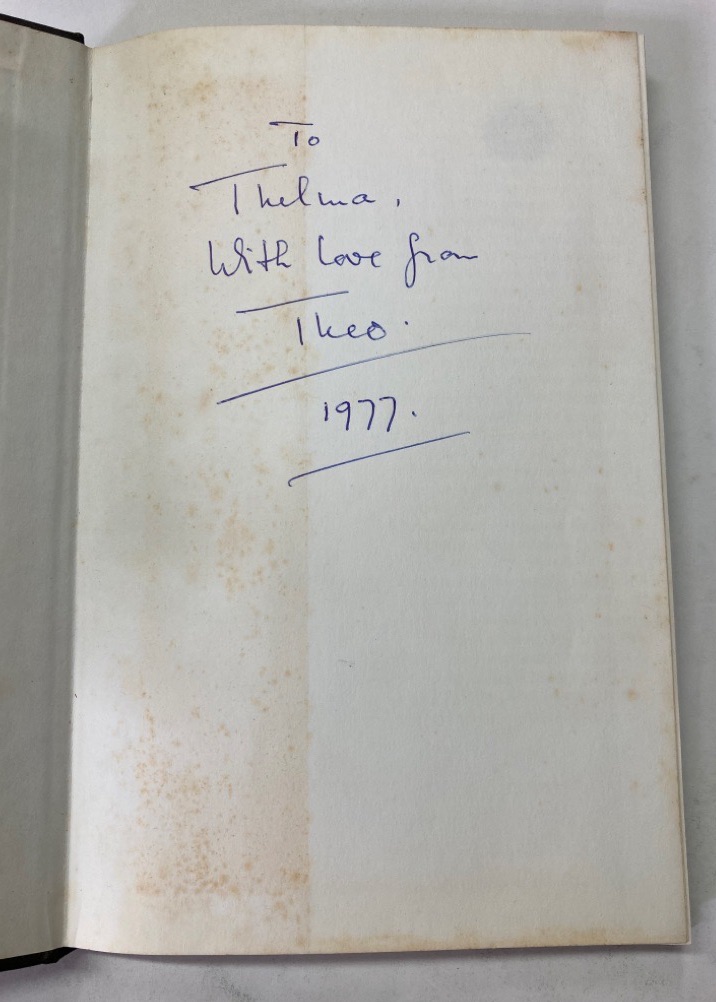 Description: 127p hardback, black boards with black and turquoise jacket, light wear to jacket edges, binding intact, pages clear and legible, some very light tanning to edges and endpapers, a good-condition copy of a book that contains dated ideas; this copy has a personal note and signature of the author on the endpaper
