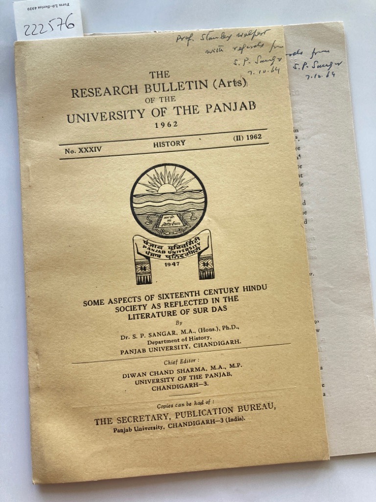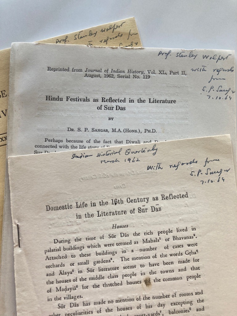 Description: 27p offprint with yellow card cover, together with a similar (Hindu Festivals) and a third one (Domestic Life in the 16th Century), all with author note, together
