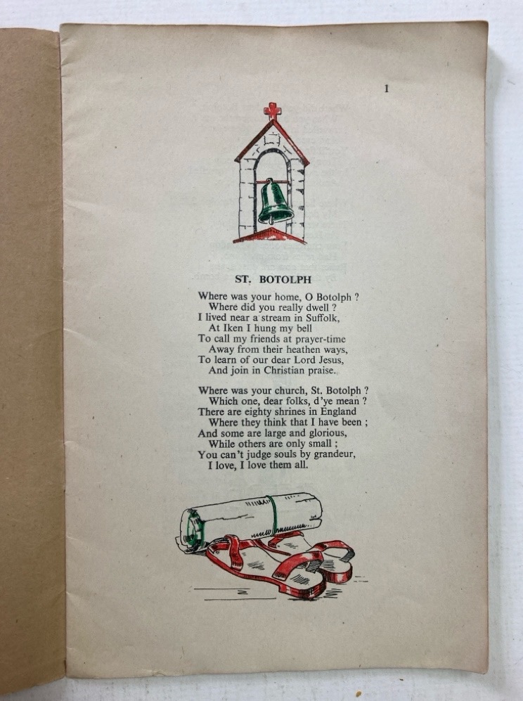 Description: 20p staple-bound poetry booklet, tan card cover, a little light wear, binding intact, pages clean and neat, colour illustration on cover and on each page, a rare publication, very few copies available