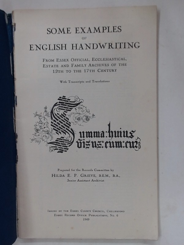 Publisher: Chelmsford: Essex Record Office 1949.