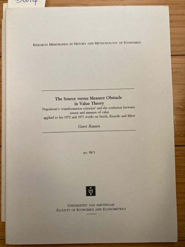 Publisher: Amsterdam: Faculty of Economics 1998. (Research Memoranda in History and Methodology of Economics.)