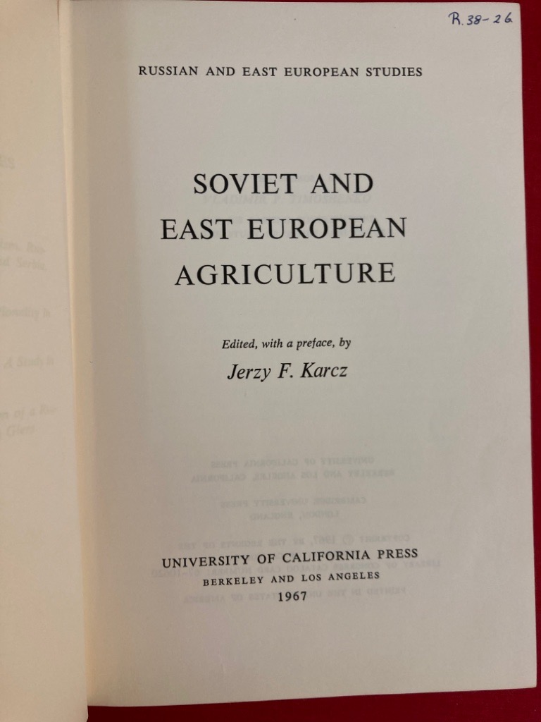 This book has been catalogued with the following subject terms: Agriculture, Russia & East