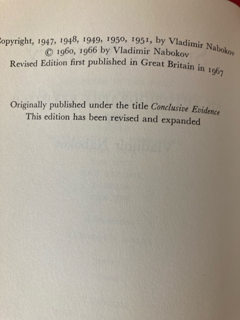 Description: 316p hardback with purple unclipped dustjacket, 2x1cm loss to jacket at top edge, otherwise an unscathed copy, revised edition first published in the UK, laid in is a copy (torn out from the New Yorker) of 'Sounds', one of Nabokov's earliest stories