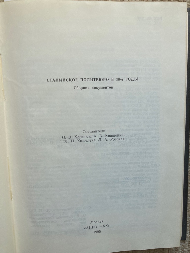 Publisher: Moscow: AIRO-XX 1995. (Dokumenty Sovetskoi Istorii.)