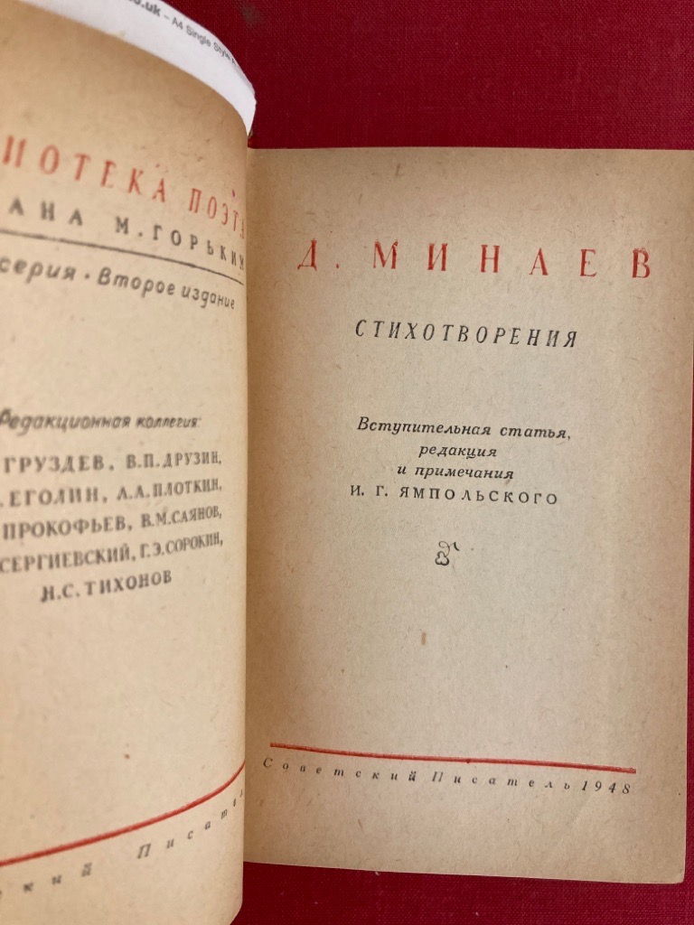 Publisher: Leningrad: Sovetskiy Pisatel 1948. (Biblioteka poeta)