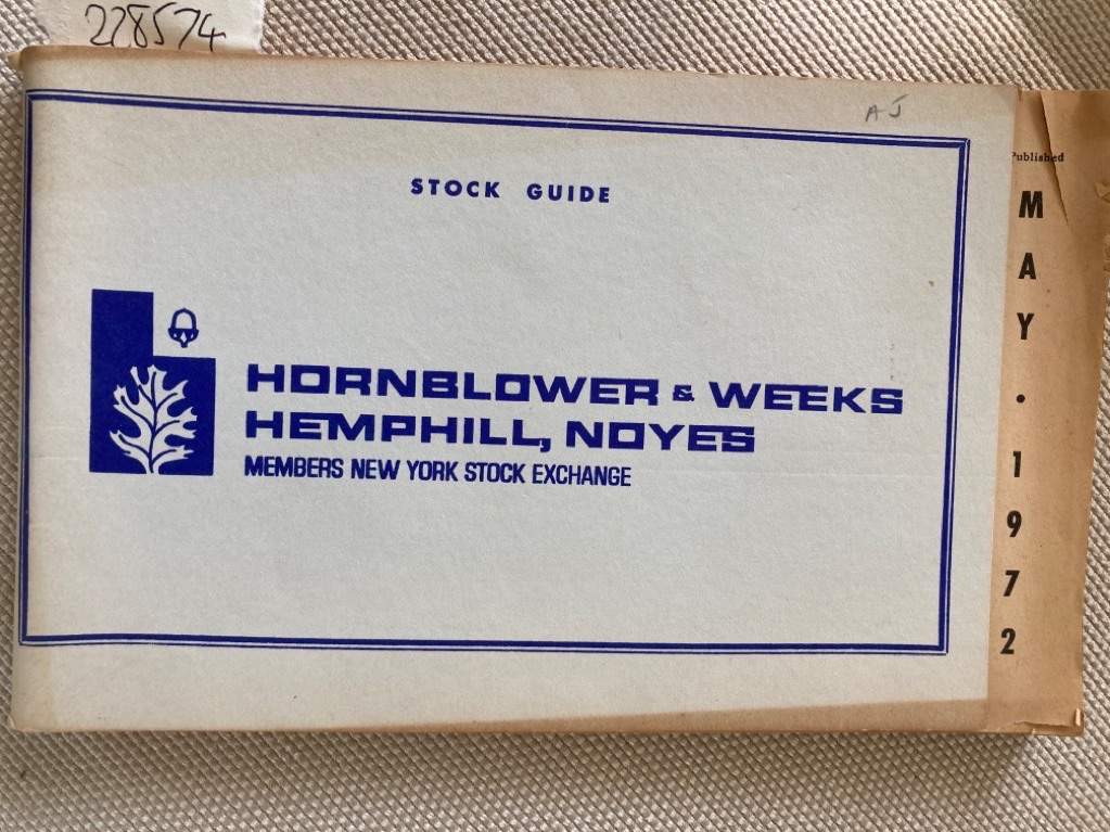 Description: 256p stapled paperback, oblong format, tables throughout, a very well preserved copy with light marginal browning, uniform with Standard & Poor's format, but on cover lettered Hornblower & Weeks, Hemphil, Noyes.
