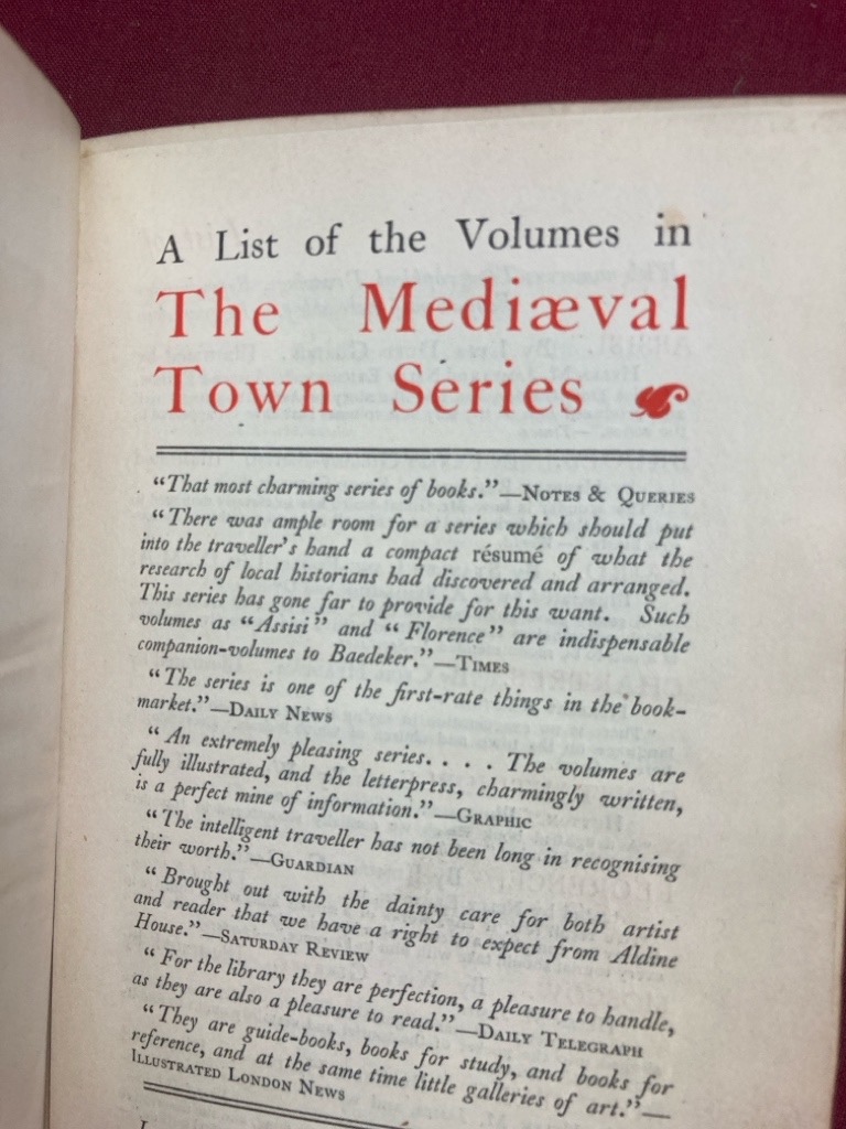 Publisher: London: Dent 1903. (Mediaeval Towns.)