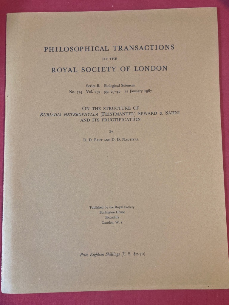 Publisher: London: Royal Society 1967. (Philosophical Transactions of The Royal Society. Series B: Biological Sciences)