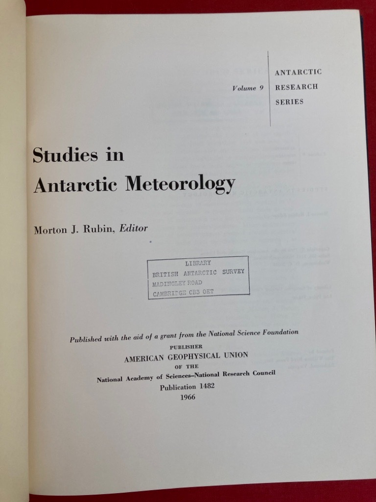 Description: 231p A4 format, navy cloth, gilt lettering to front and spine, illustrated, clean pages, firm binding, a well preserved copy, very good, Antarctic Research Series Volume #9