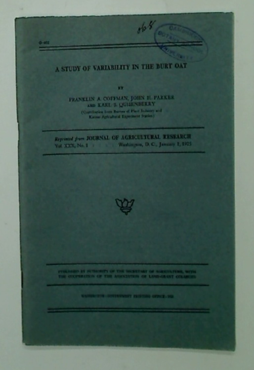Description: 64p offprint from the Journal of Agricultural Research, with plates and tables, also colour plates, nice and clean copy with library stamp to cover