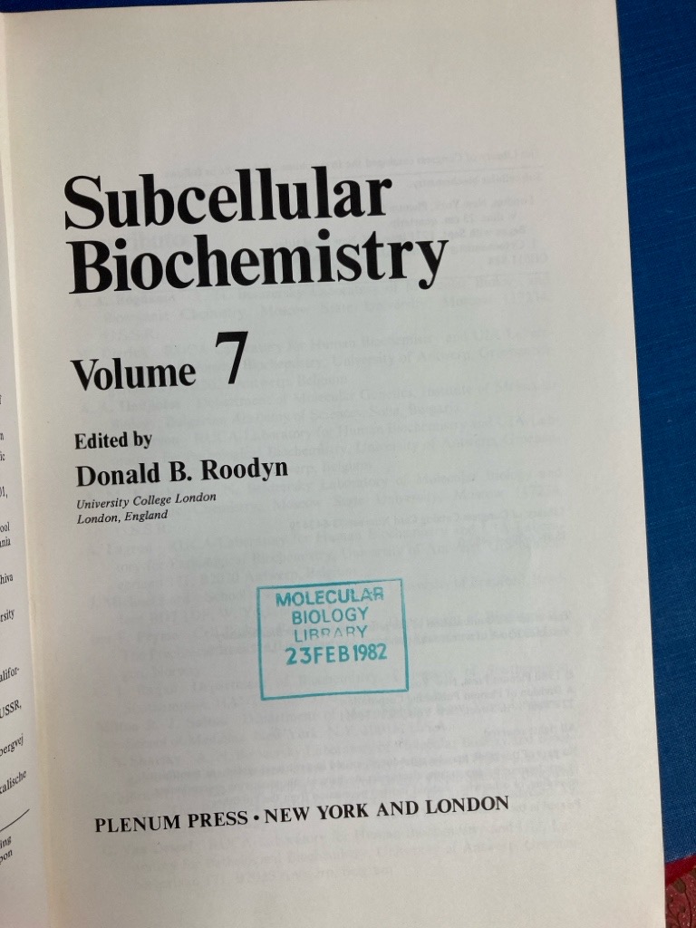 Description: 411p brown boards hardback, silver lettering to spine, nice clean and firm copy, hardly used, bookplate and stamp to title, "Donated by Aaron Klug" (ISBN: 0306404850)